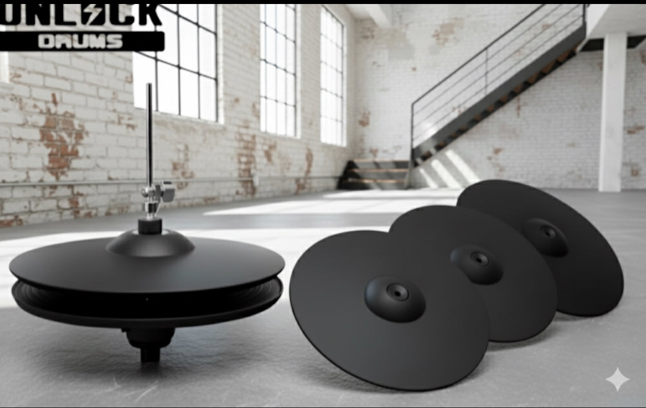 UNLOCK LARGE Cymbal Set 14” Hi Hat 17” Crash 20” Ride for Roland Alesis Kit
