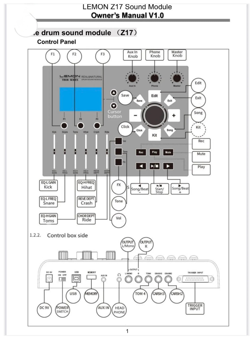 Lemon T950 PRO Dark Wood Electronic Drum Set T-950 NO Module